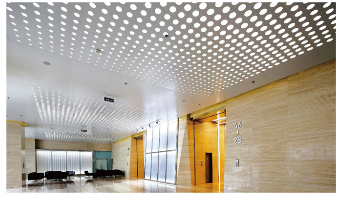 沖孔工藝板廣泛應(yīng)用于金屬天花設(shè)計,有助于增加整個空間的舒適感,降低噪音所帶來的影響。每個沖孔形式提供不同的開放面積、比率(沖孔率),多樣裝飾可選不同形式的沖孔款式。